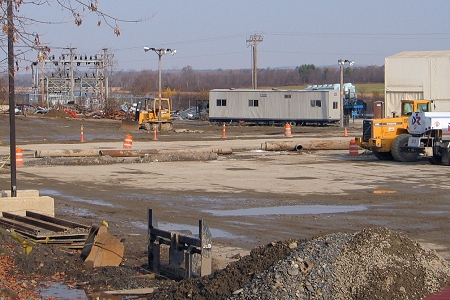 The soil decontamination bins are gone. Compare this with the photograph taken of the same area and posted on October 17. I think the mill floor slab will come up soon. |