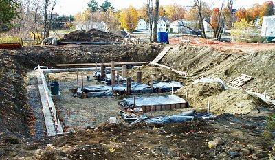 Where is the Odd Fellows Hall going to go? It will be moved a few hundred yards down the Stetson Road from Main Street. The picture above shows its new foundation. The Petals Plus flower shop is just across the street from the new location.