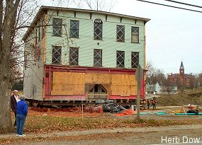 The Odd Fellows Hall is now in its new location on the Stetson Road. It didn't collapse. It didn't fall apart. These pictures were taken yesterday. The photo below is from the bell tower.