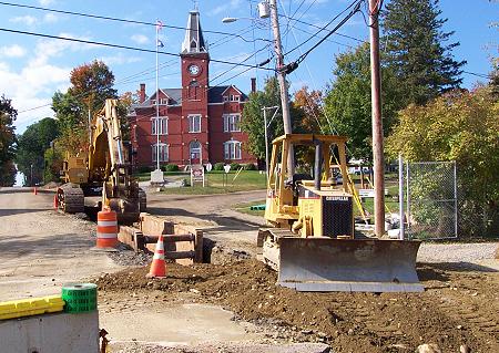 Streets around town will be blocked by digging off and on throughout the Fall as work on the sewer lines continues. This is a common sight these days. I've seen the same kind of work recently in Bangor, Dexter and Dover-Foxcroft. |
