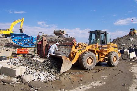 A washed cobble factory. They are removing rocks from the contaminated soil before moving it to the new soil containment area. The rocks then go through a crusher and washer to break them into cobble size and remove the contamination. Some of the crushed stone will be used to fill in the lower part of the Area 1 excavation. |