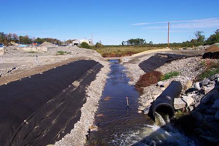 Restoration work continues on the stream bed above the Route 7 bridge.