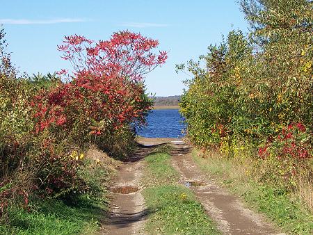 This access road leading to the boat landing on Corundel Lake is located just above the Upper Dam. It is used by a few duck and goose hunters, fishermen and canoeing enthusiasts. |