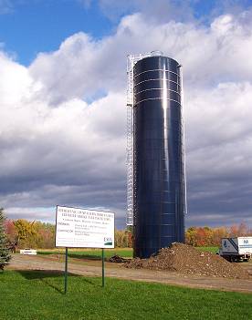 The new water storage tank on the Nokomis Road has grown considerably since the previous photo. They actually built it from the bottom up. Sections were added to the bottom and then jacked up to allow more sections to be added.