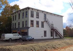 If you haven't been through Corinna lately you might not have seen how much better the Odd Fellows Hall looks these days. New siding certainly spruces up the place. The back side, right photo above, faces the river and is visible from Route 7 as you drive through town. |