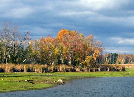 This is a view of the East Branch of the Sebasticook River from the County Road bridge in Newport, looking back upstream toward Corinna.