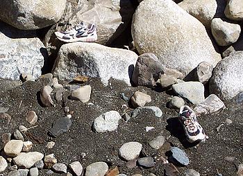 "Okay, who left their sneakers in the brand new stream bed? I guess we just can't have nice things." Just kidding. Bet someone's mom was mad when they came home without these. |