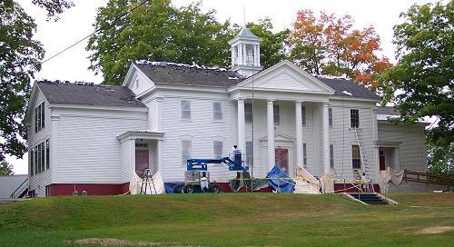 Work also continues on the Corinna Union Academy Museum. Here we see the application of another coat of paint and new roofing in progress.