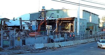 This picture was taken at about 4:00 PM on Monday. The section they are working on now is called Building 3. Built in 1950, this part of the mill straddles the river.