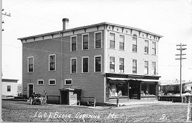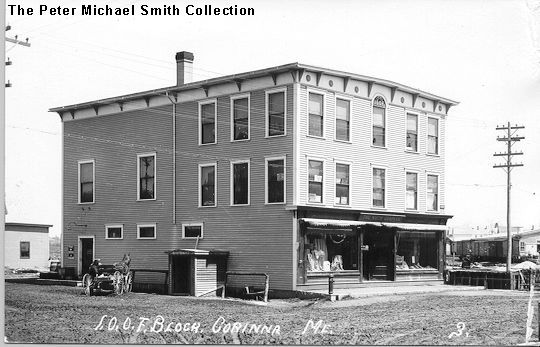 | This post card from Peter's collection shows the Odd Fellows Hall in its original location on the foundation above. The building was constructed in 1907. There is no postmark on this card but I think the picture was taken around 1912. Click on this picture to view a larger copy. | |