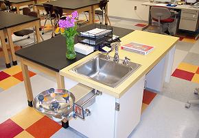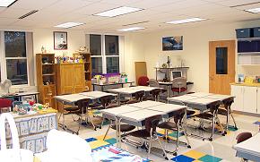 classrooms are spacious and very well equipped. To the right is a science