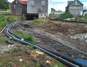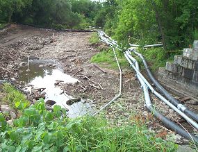 Area 3 is just below the trestle. The barrier across the further end of this section is visible downriver where the pipes seem to stop. They actually stop just beyond that barrier where the water runs out into the river bed. The excavation of this section started this week. |