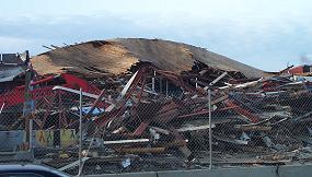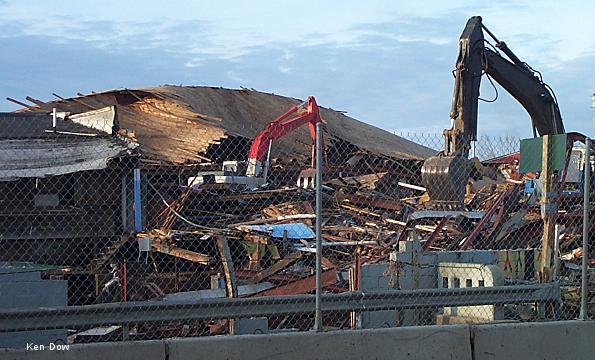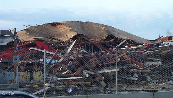 looking over the pile of debris. In the foreground is the pile of sorted