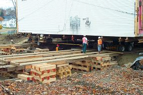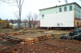 The Odd Fellows Hall arrived in its new home on October 27, 2000. |