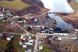 | Here's a good shot of the entire Eastland Woolen Mill site from the boiler room on the left to the Thurston House on the right. Soon there will be a chain-link fence surrounding the entire demolition area. | |